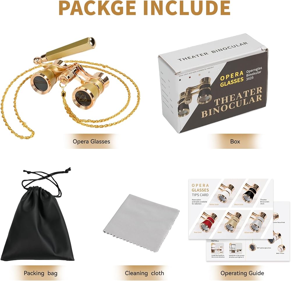 [HD BK9 Prism Theatre Binocular]- Premium BK9 prism delivers brighter, sharper images with true-color reproduction. 3x25mm lenses provide wide-field viewing without distortion - ideal for distant stages or race tracks.
