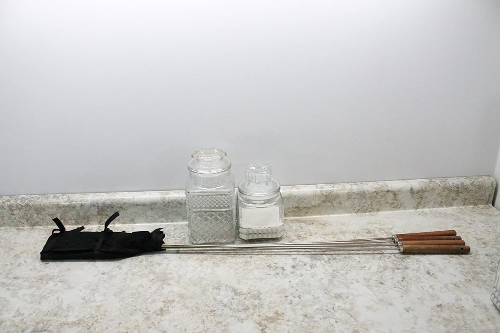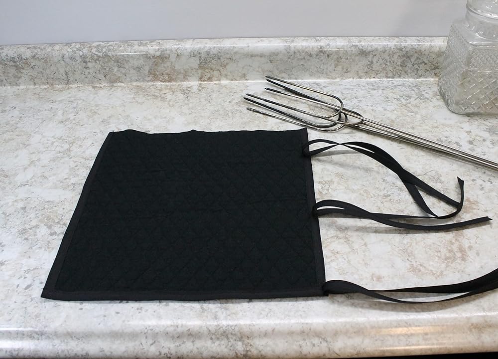 Wonderful for camping! Thick Quilted cover avaialable in multiple colors. Measures roughly 12x14 inches. Easily wrap and tie hot dog roasting sticks for storage without sharp edges! Makes a wonderful simple gift for any outdoorsmen!