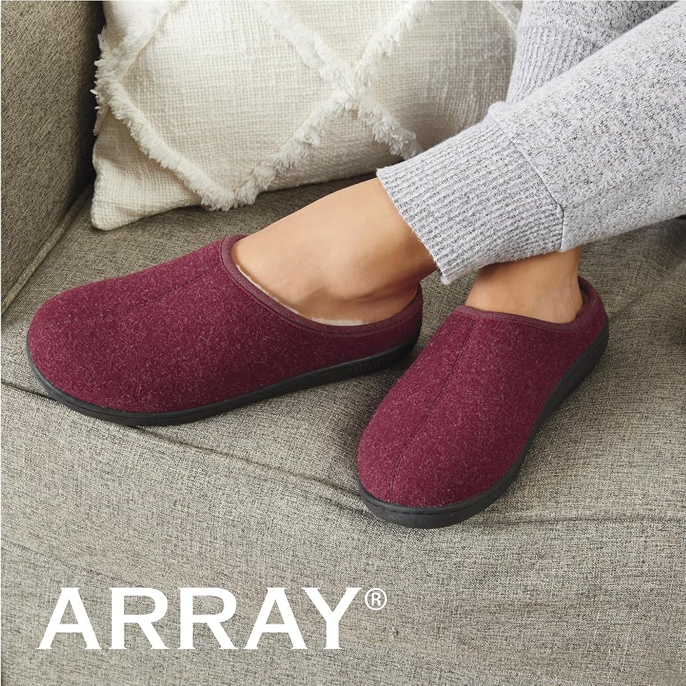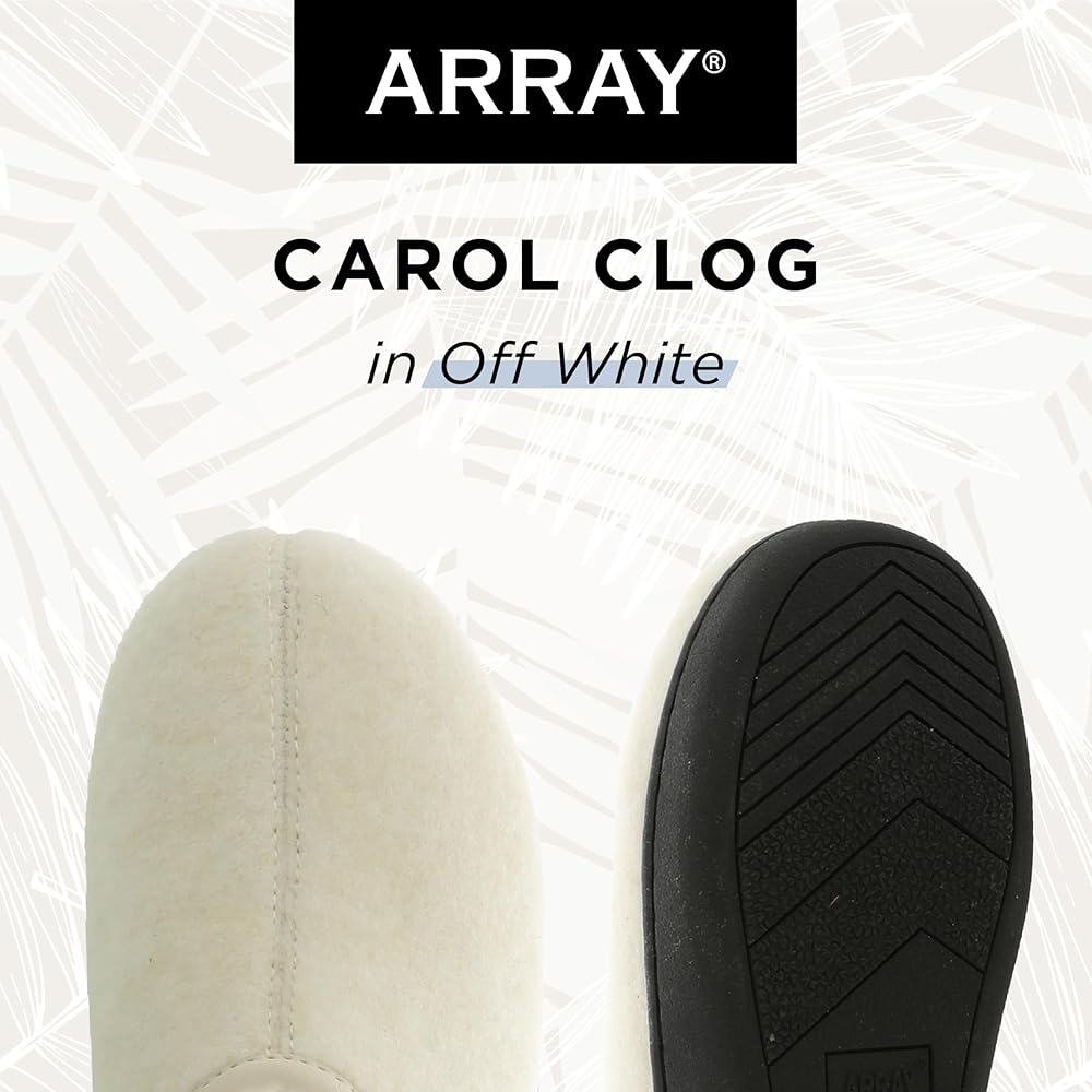 ARRAY Women's Carol Cozy Slip-On Clog is the obvious choice when looking for comfort and don't want to sacrifice style. This luxe slip-on mule features a soft but sturdy felt upper and plush faux fur lining, effortlessly adding style to a comfortable pair of shoes. The padded foam and latex cupped footbed supports the 5/8” heel support all-day wear, even if you spend most of the day on your feet, either standing or walking. The versatile design allows you to pair the Carol clog with a turtleneck, cable-knit cardigan, and pants for a go-to cold-weather look or with a white tee and your favorite jeans for a relaxed, casual outfit. These felted mules are a timeless wardrobe staple that boasts a contemporary, classic look, ensuring they never go out of style. ARRAY is known for offering high-quality shoes, and the Carol Clogs are no exception, combining comfort, style, and quality. Elevate your footwear collection with the ARRAY Women's Carol Cozy Slip-On Clog.