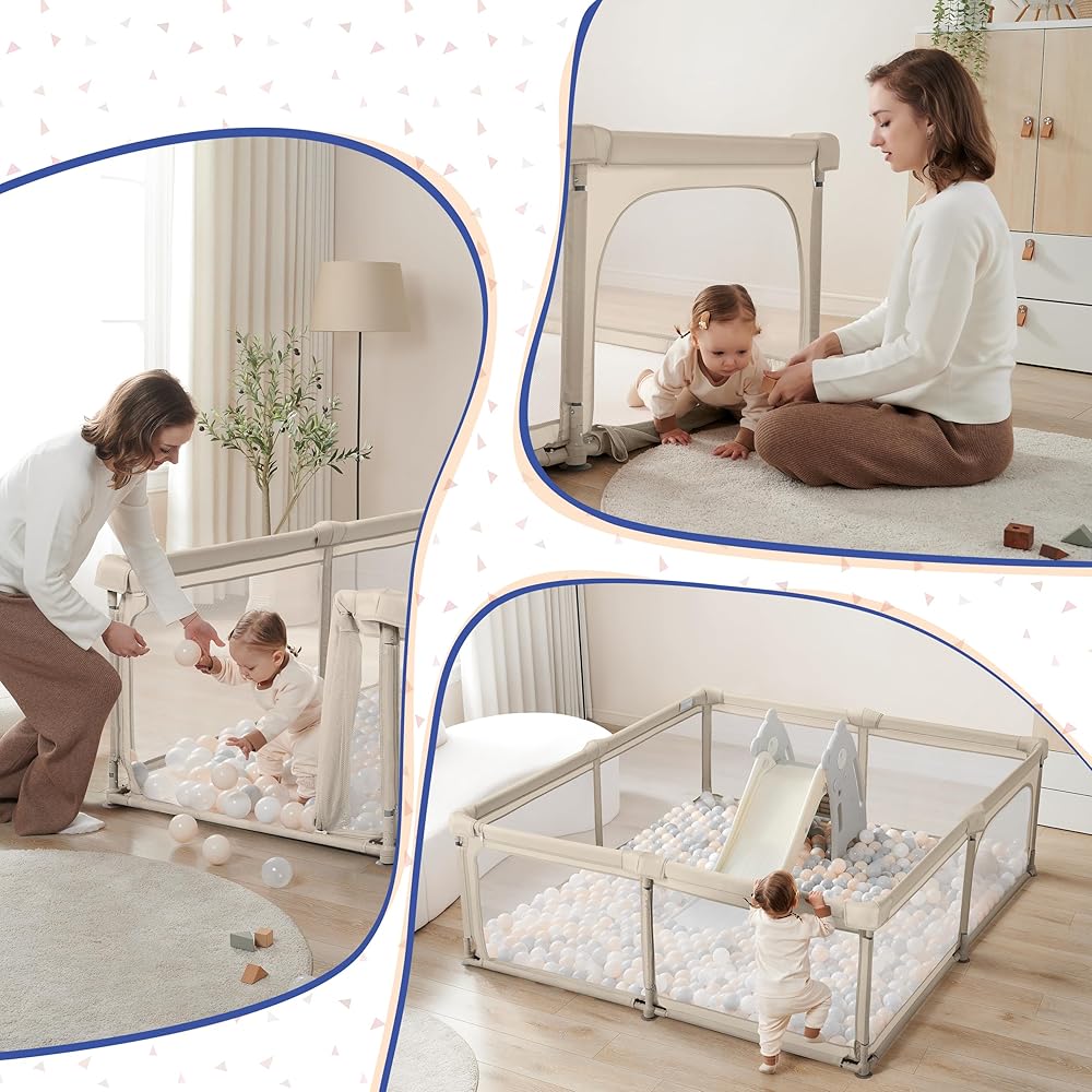✅ Safe & Secure Play Area – Designed with 360° breathable mesh visibility, parents can keep an eye on their baby from all angles. The 27-inch height prevents infants and toddlers from climbing out, reducing the risk of falls. The seamless construction eliminates gaps, ensuring your baby's hands and feet won't get stuck.