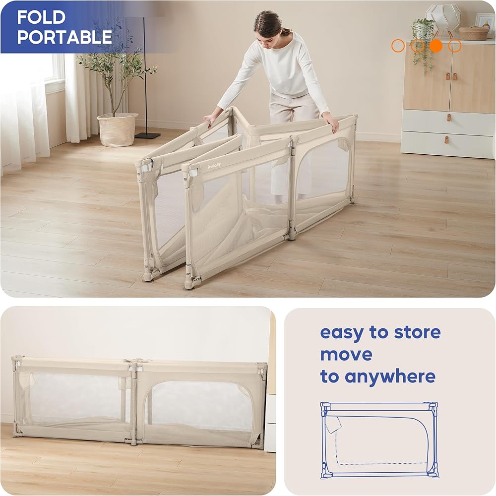 ✅ Unique Playpen with Easy-Access Gate – Unlike most baby playpens, the Sweeby playpen features a hidden gate, allowing parents to enter effortlessly while holding their baby or toddler. This design is especially convenient for individuals with mobility challenges, including elderly grandparents. The foldable design makes storage and transport easy, saving space when not in use.