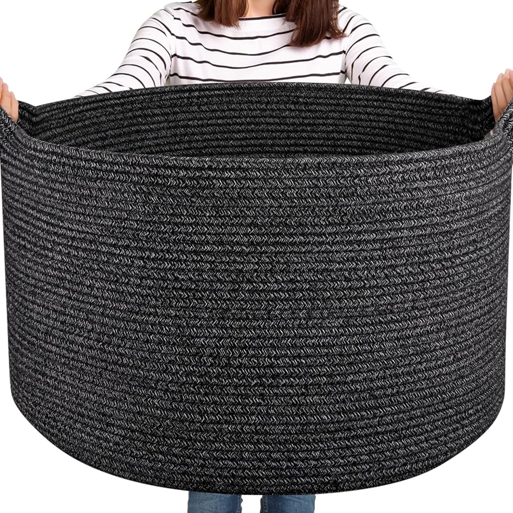 Large Woven Baskets for Storage, 22.8" x 22.8" x 13" Blanket Storage Living Room, Baby Toy Basket for Clothes, Pillows, Towels, Shoe Basket for Entryway (Black)