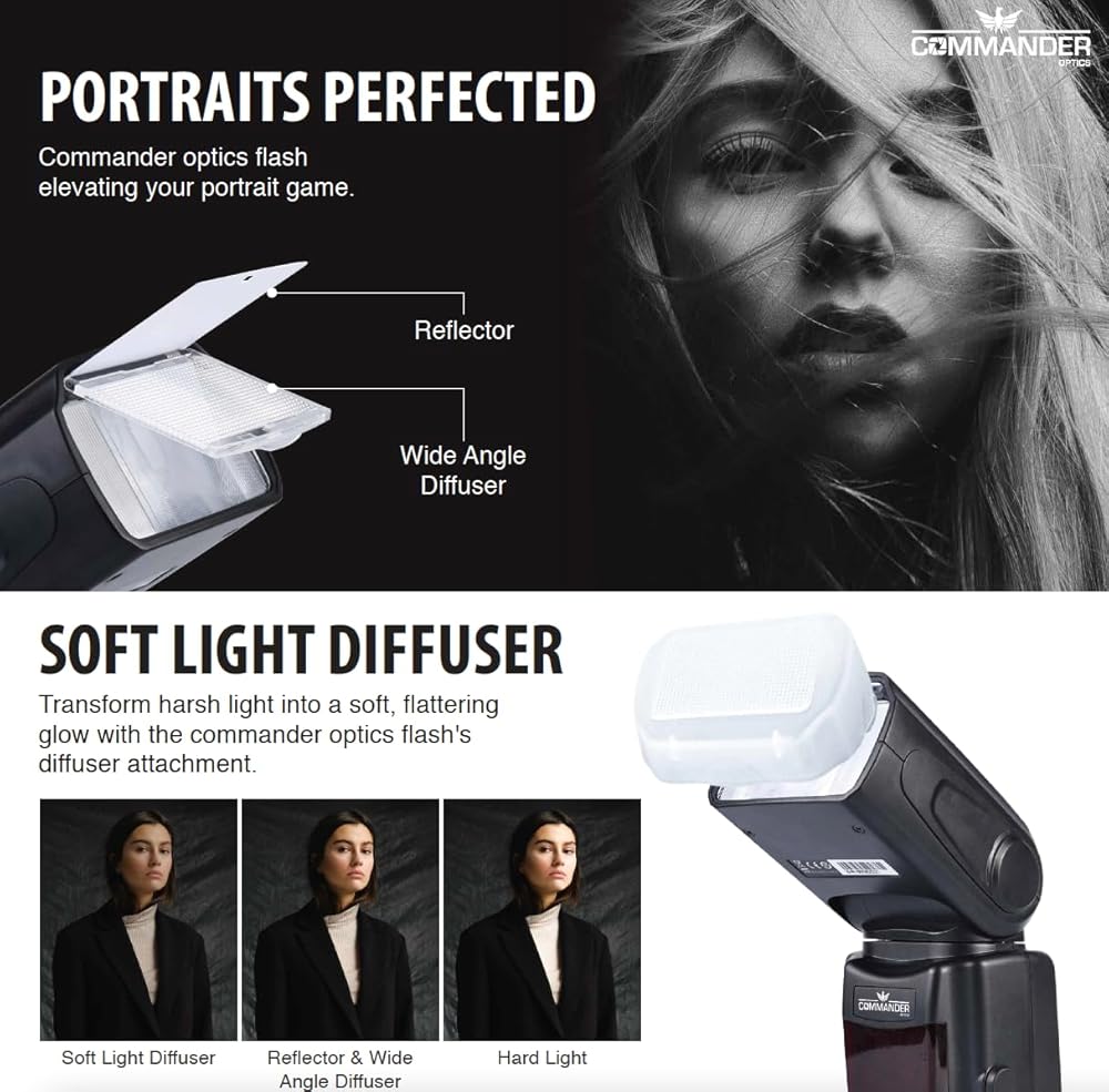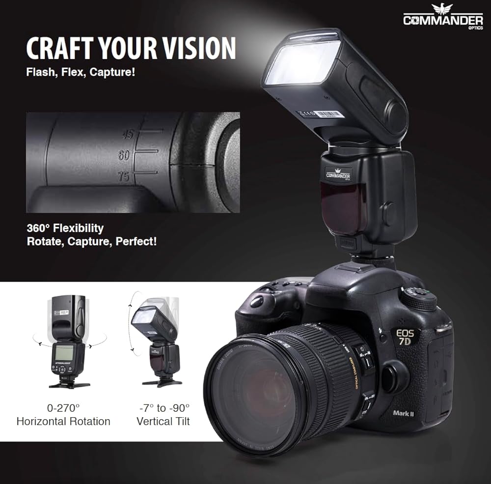 ARTISTIC CONTROL WITH ADJUSTABLE FLASH HEAD: Enjoy creative freedom with the camera flashes head's 0-270-degree horizontal rotation and -7 to -90-degree vertical tilt, enabling you to experiment with diverse lighting angles for captivating shots. The reflective flash feature adds an extra layer of versatility, allowing you to bounce light for softer and more natural-looking results.