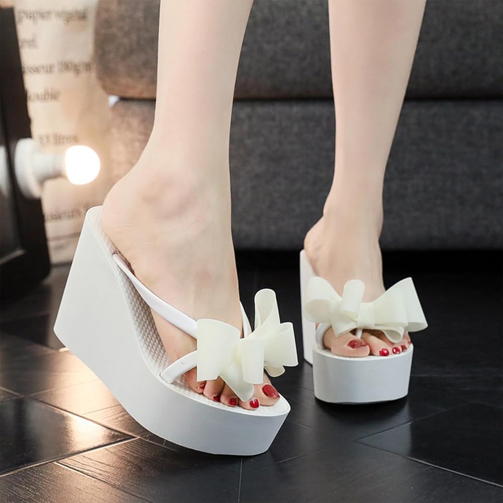 Heel: Heel height 4.33 inches, platform height 1.57 inches. Cute and elegant flip-flop design and bow decoration bring you a sense of casualness and fashion.