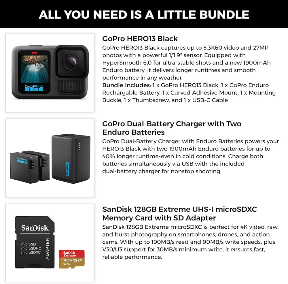 Equipped with the new 1900mAh Enduro battery, this rugged camera offers extended runtime and top-tier performance in any environment. With support for HB-Series lens mods, timecode sync, and Bluetooth mic connectivity, the HERO13 is your all-in-one tool for capturing stunning footage anywhere.