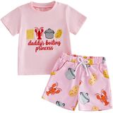 Toddler Baby Boy 2Pcs Summer Outfit Lobster Crawfish Embroidery Short Sleeve T-Shirt Gingham Shorts Set Cute Ocean Clothes