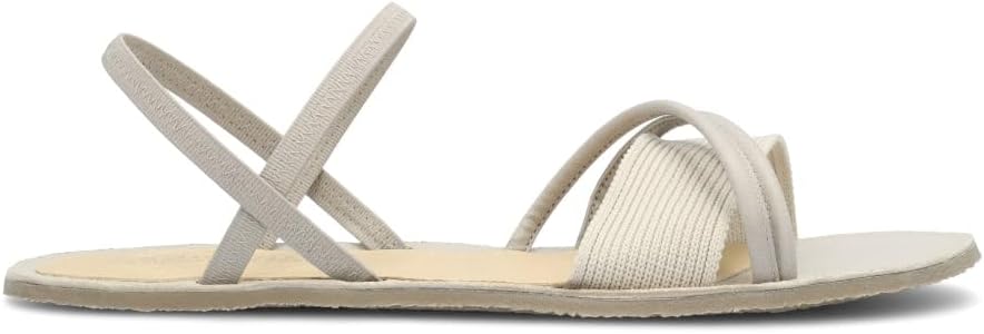 Step into summer with the elegant freedom of Groundies Corfu barefoot sandals for women. These ultra-lightweight sandals feature a wide toe box for natural movement and all-day comfort. The smooth leather-look upper combines sleek synthetic straps with a wide knitted band for a modern, minimalist design. Inside, a breathable onSteam microfiber insole and soft goatskin leather provide luxurious, foot-friendly cushioning. The flexible GC2 sole with a 5 mm base and 0 mm tread allows your foot to move freely and naturally. From beach strolls to evening outings, Corfu sandals offer barefoot comfort with timeless summer style. Runs true to size.