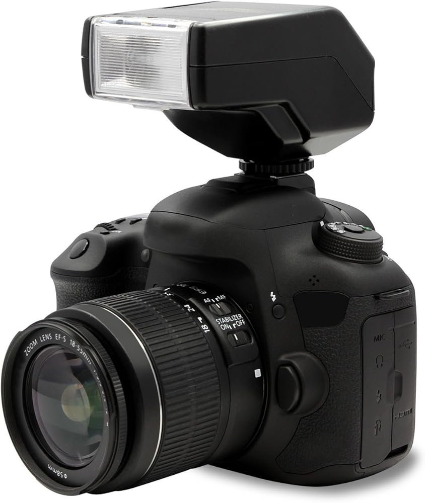 This Universal Low Profile Auto Flash is a compact automatic flash unit, intended for beginners with non-AF cameras, who are looking for an effective and inexpensive way to enhance lighting. In addition, it features tilt up to 90° and coverage for 35mm full frame lenses. It's compact and lightweight design makes travelling with this flash easy. Direct flash can sometimes be harsh and create ugly shadows behind your subject. By tilting the flash's head, you can bounce the flash off a ceiling or wall to create softer lighting effects.