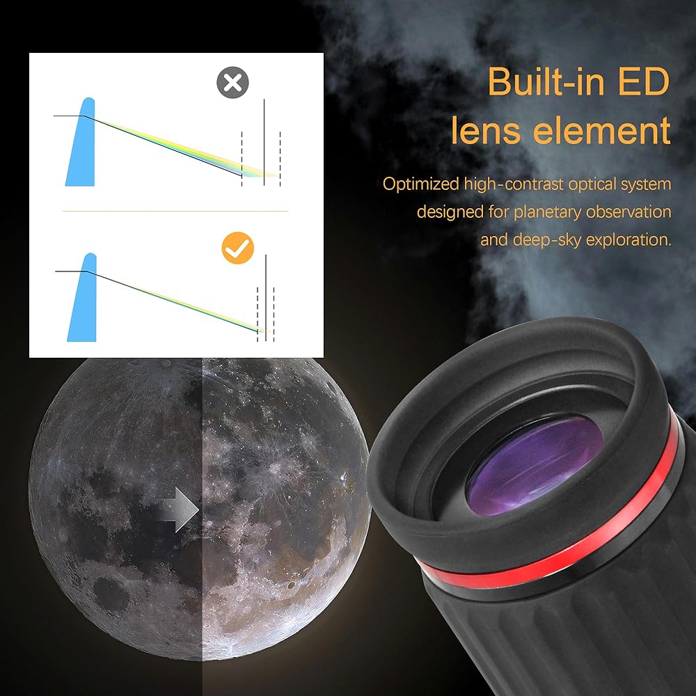 ED Element High-contrast Optics: The first time you observe an object through one of these eyepieces; you will almost certainly be struck by the brilliance clarity and depth of colour in the image