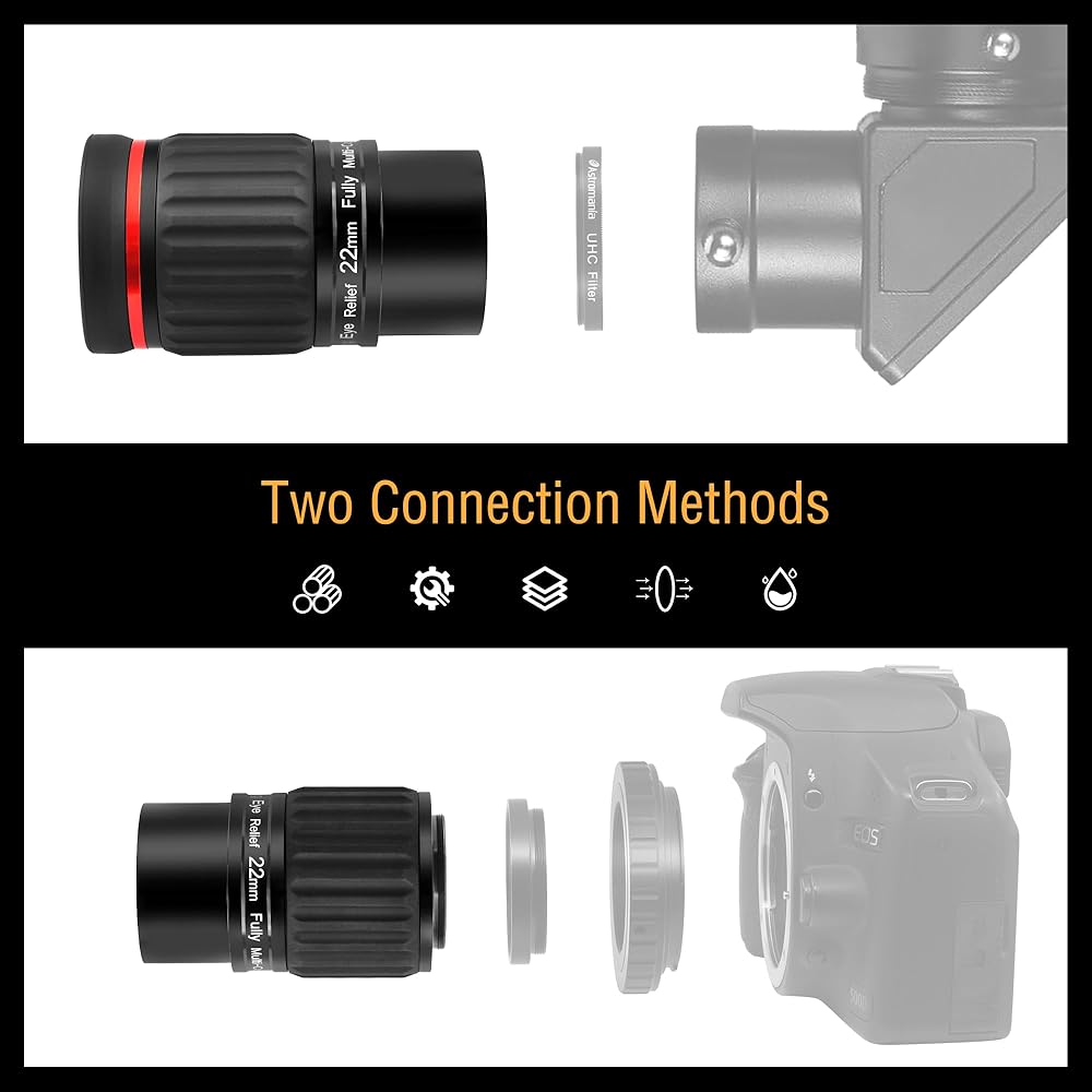 Astromania SWA 70 Degree Eyepieces with ED Optics: Astromania eyepieces provide a high contrast image at all times the built-in ED element making this possible; the 70 degree wide angle optics mean you always enjoy a huge field of view
