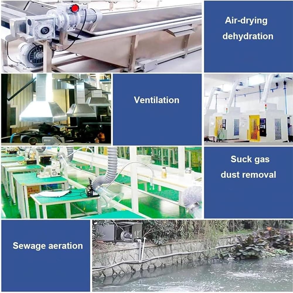 • 【Industrial Regenerative Blower】: The single phase vortex blower can be used for suction purposes such as fish pond farming, vacuum adsorption, industrial adsorption, and blowing. High-temperature resistants precision bearings effectively drive the rotor to rotate, allowing the blower fan to run smoothly and provide strong power for the fan