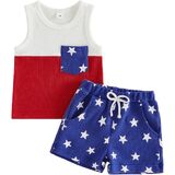 Features: Toddler Baby Boy 4th of July Outfit,little boy2pcs summer shorts set,Independence day baby boy outfit,,4th of July Stars and Stripes clothes set, contrasting colored round neck sleeveless tank tops,chest pockets and star striped elastic waist shorts with pockets and bows, baby american flag outfit,baby boy american flag clothes, simple and casual 2pcs fourth of July outfit