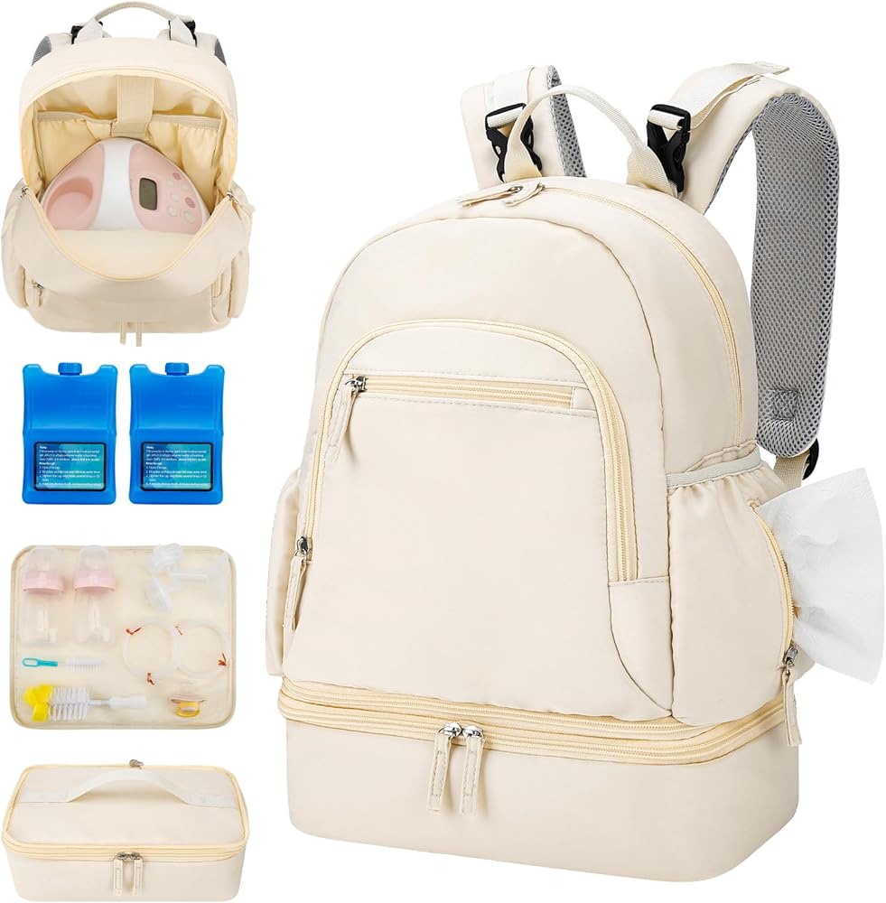 Breast Pump Backpack Fit for Spectra S1 and S2 with Removable Cooler Compartment, Pumping Bag for Pump Accessories, Breast Pump Bag for Work, Travel and Family Use Beige