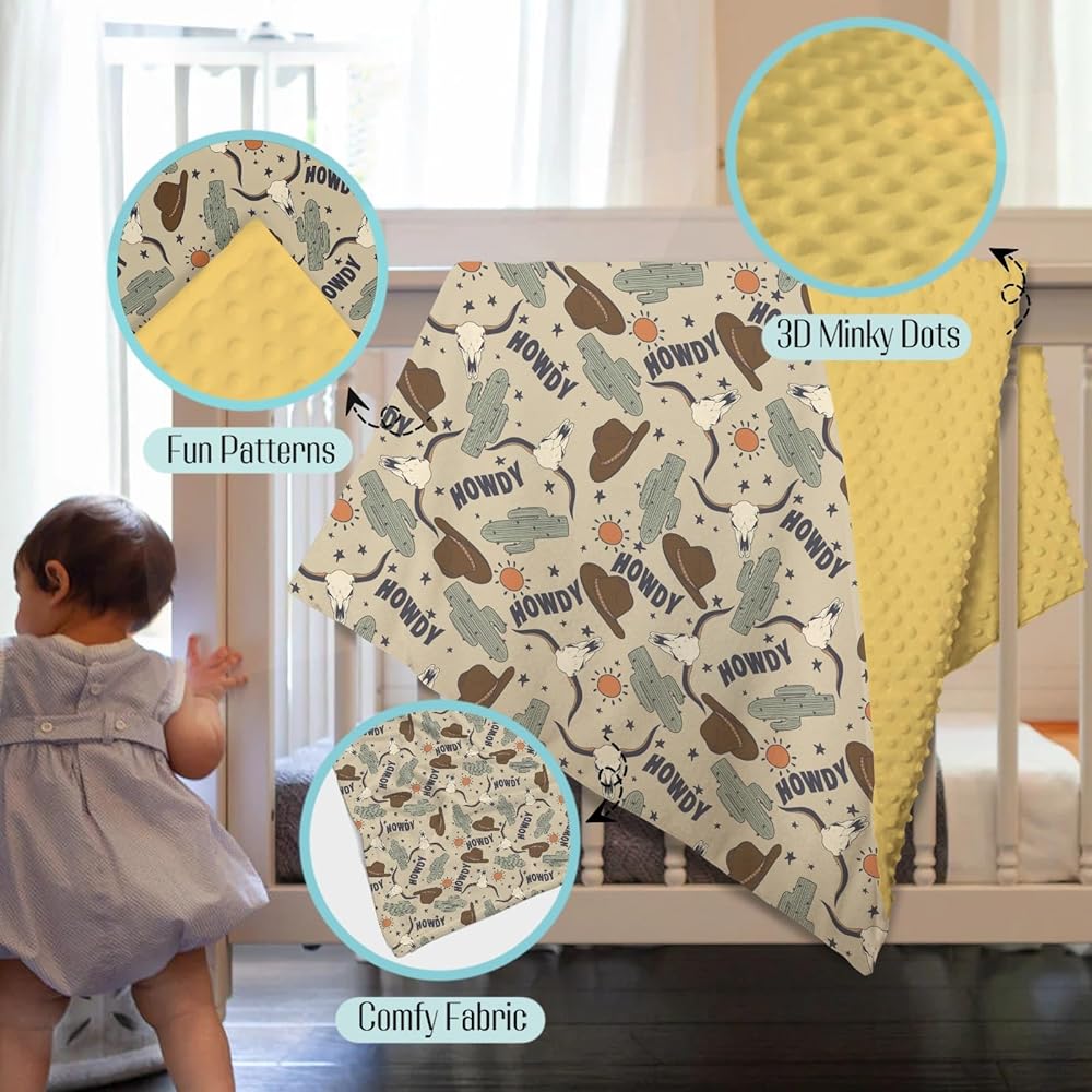 Material: Our fun patterns printed mink baby blankets are made of plush flannel and mink fabric to provide your little one with comfort and warmth in all seasons and climates. The fluffy toddler blankets are ultra-soft thick, durable, breathable and skin-friendly feature double layer design with a dotted backing to keep baby comfortable while sleeping