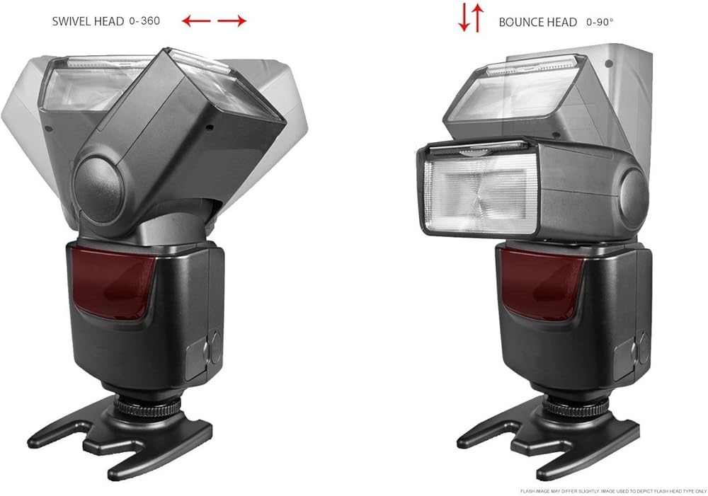 This flash includes a vertical bounce of 90° a horizontal swivel of 270°, with zoom settings of 28mm, 35mm, 50mm, and 85mm Autofocus auxiliary lamp helps the camera to focus in low-light situations Includes reflecting plate & wide angle diffuser Guide No. 138'/42 m at 85mm Power Source: 4x 1.5V "AA" batteries (alkaline, lithium, NiCad & NiMH)
