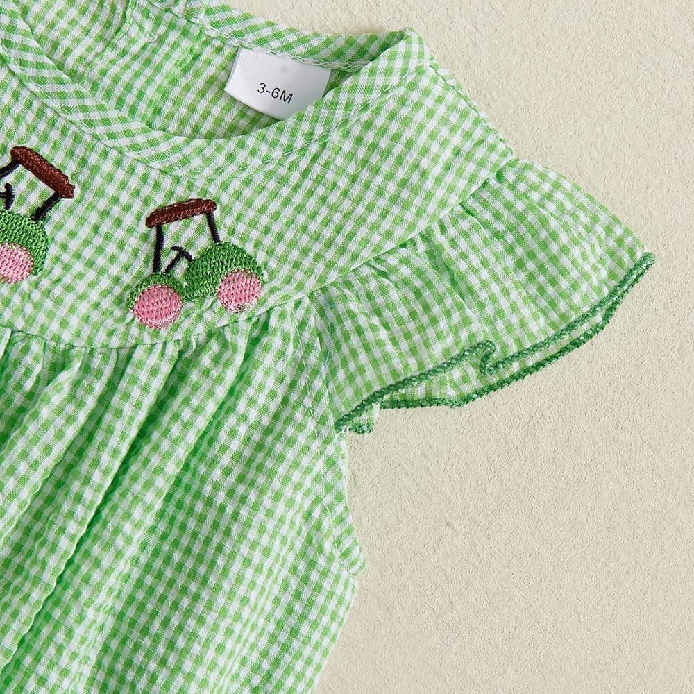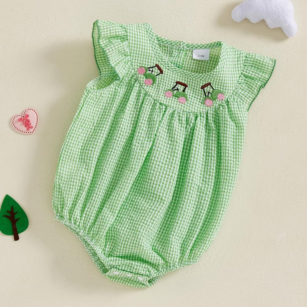 - Feature: Infant newborn girls summer outfits, baby girls outfits summer, round neck flying sleeve golf theme embroidered ruched plaid print romper bodysuit, baby girl playsuit, baby girl one piece jumpsuit, infant girl hole in one birthday outfit