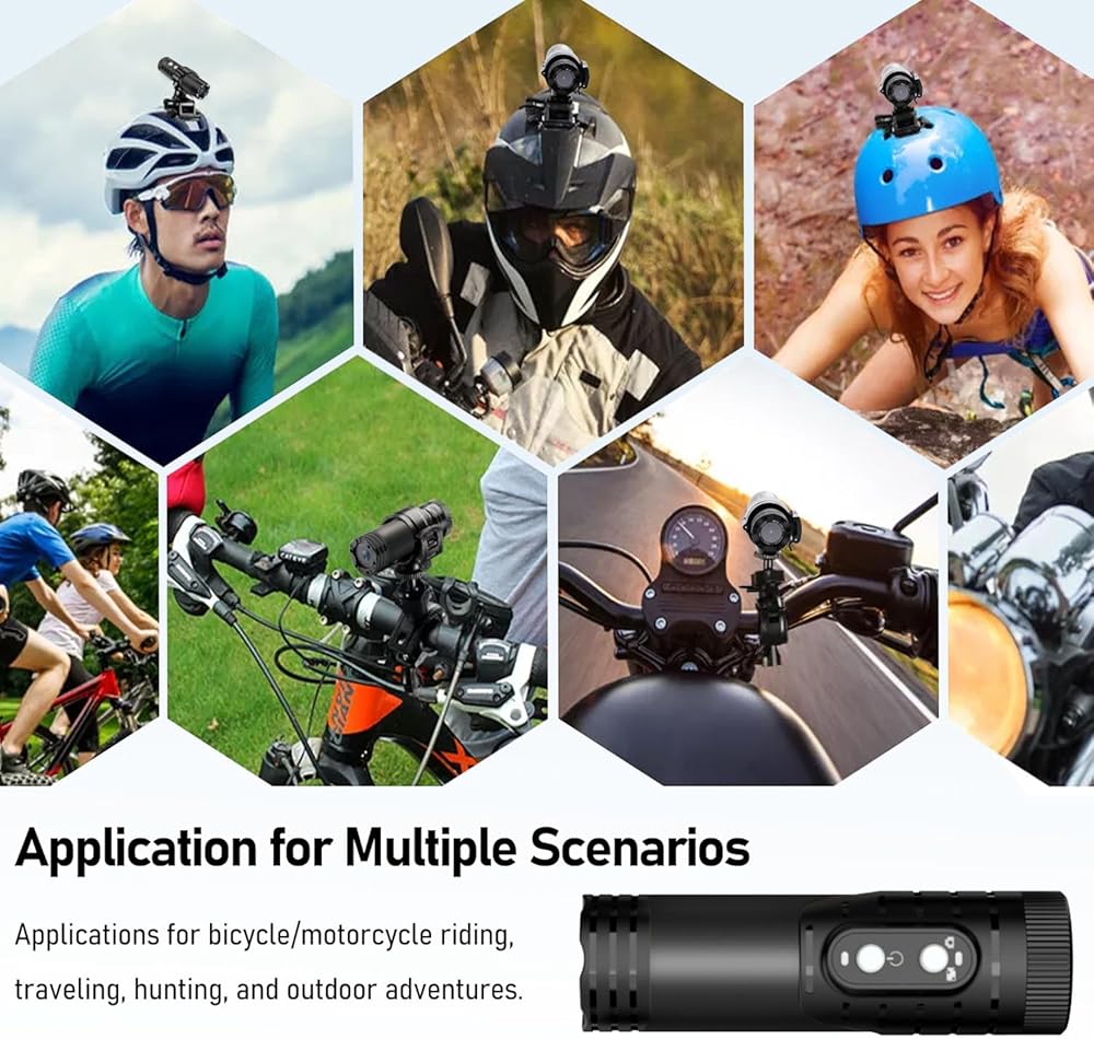 Lightweight & Durable: Weighing just 80g, this motorcycle helmet cam is perfect for motorcycling, biking, skiing, and more. It provides diverse mounting options for handlebars, helmets, etc. Adapt to different needs, get ideal angles to record adventures from various perspectives.