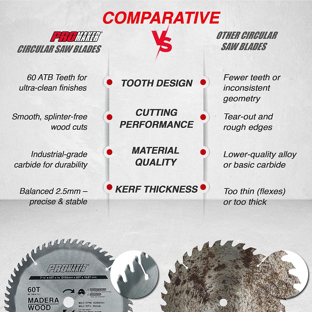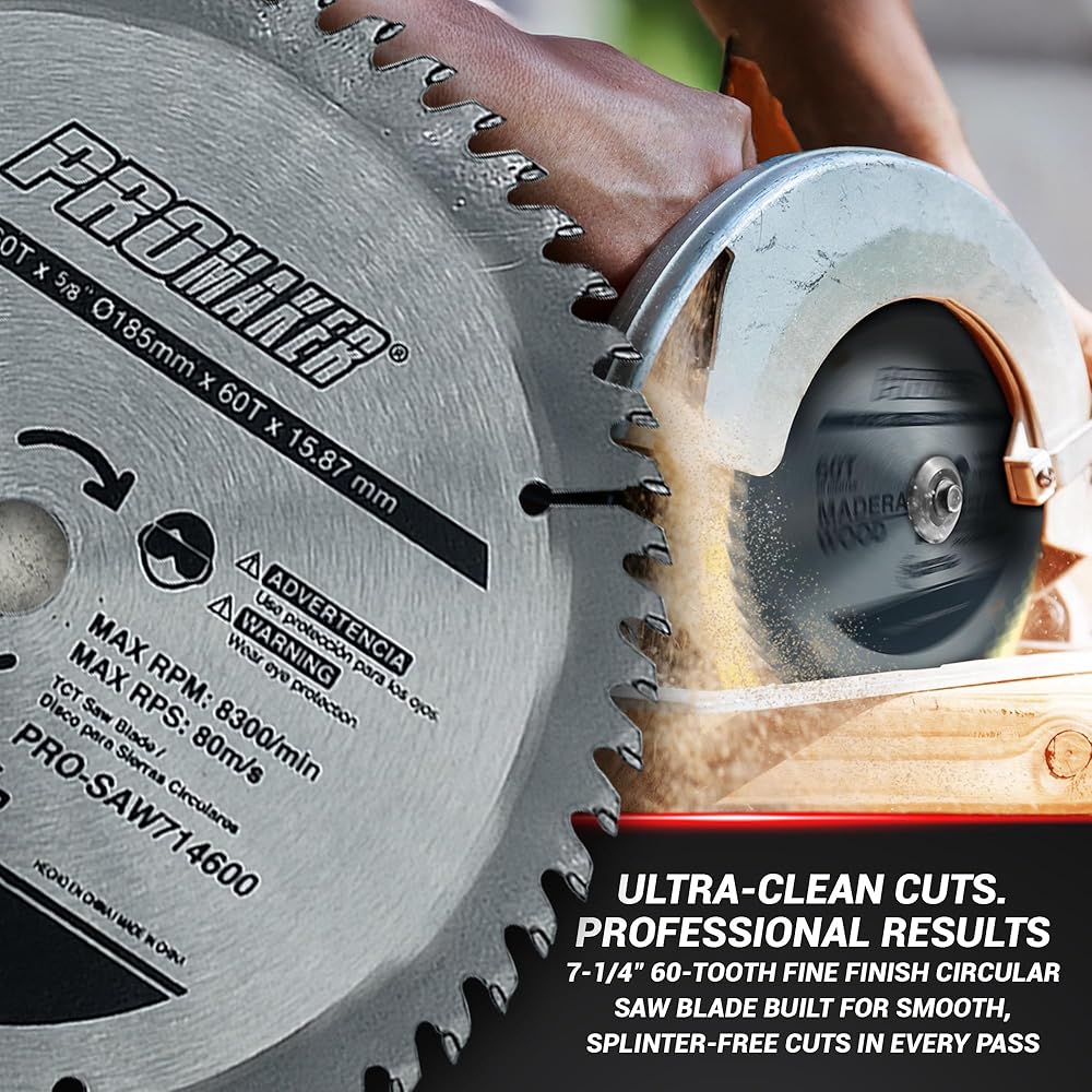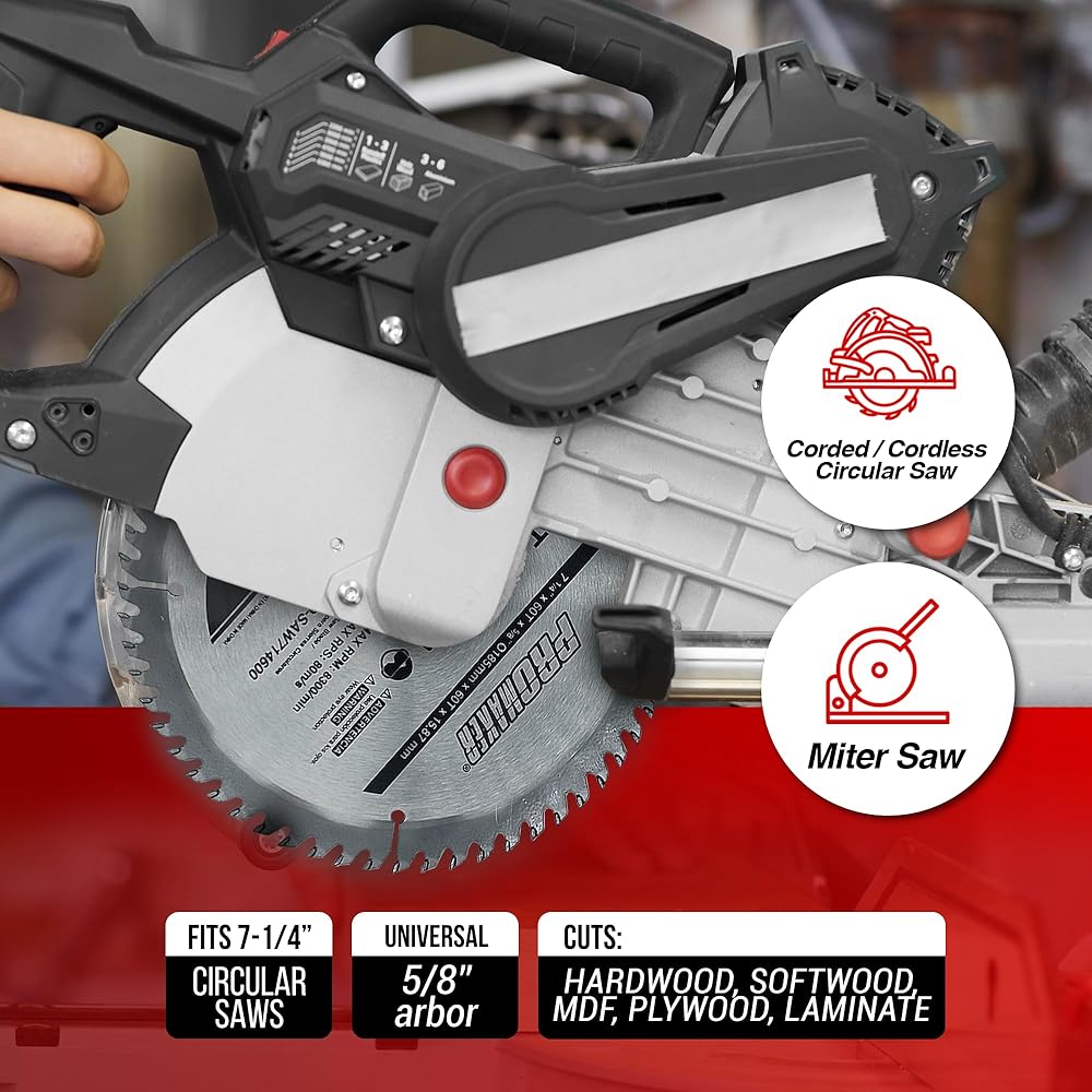 ✔️ SMOOTH & PRECISE CUTS IN WOOD – Our 7 1/4 circular saw blade wood is designed for fine finish applications, featuring 60 sharp carbide-tipped teeth that deliver clean, splinter-free cuts on hardwood, softwood, plywood, MDF, and more. Ideal for professionals and DIYers using any 7-1/4 circular saw.