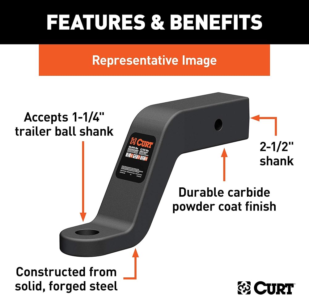 HEAVY-DUTY. This forged trailer hitch ball mount comes with a 2-1/2-inch x 2-1/2-inch shank to fit any industry-standard 2-1/2-inch receiver. The ball mount also has a 8-inch drop and 6-1/2-inch rise to promote level towing with large, lifted trucks