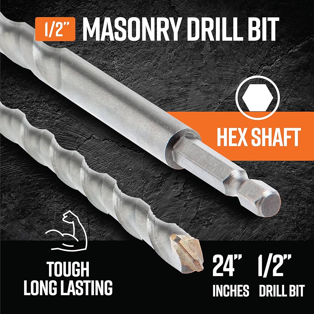 1x 1/2" x 24"Masonry Drill with HEX shaft / shank