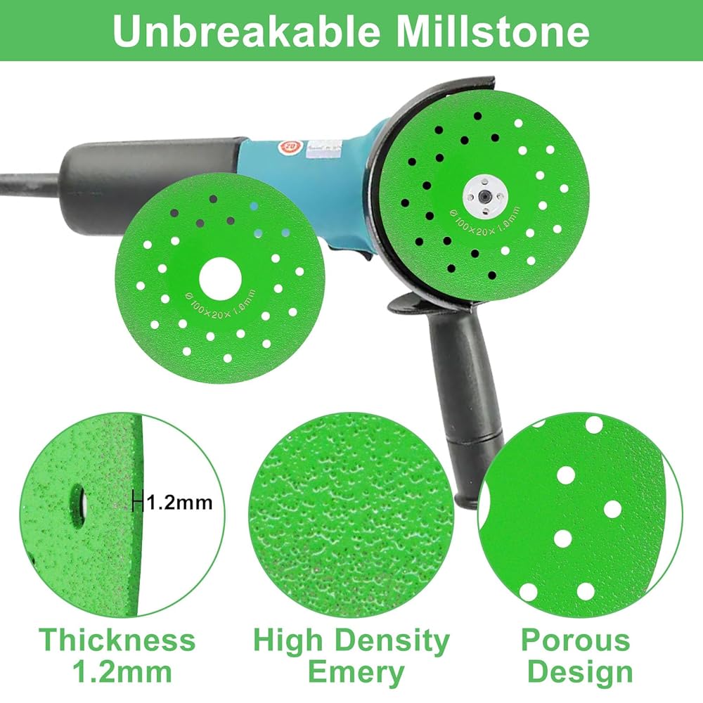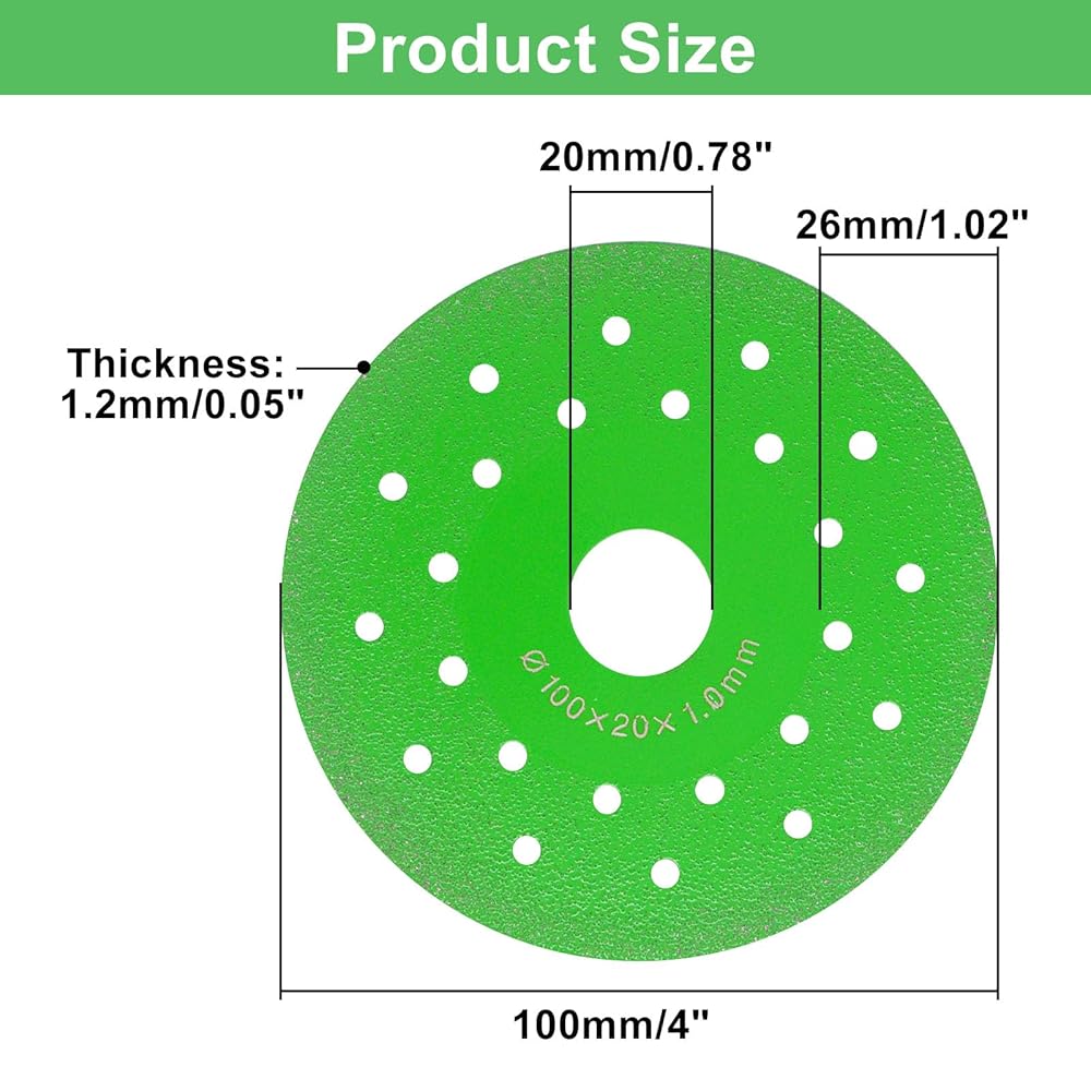 Package Includes: You will receive 3 packs of rock slab grinding disc 4 inch. With outer diameter is 4" (100mm), inner hole is 0.79" (20mm), thickness 0.05" (1.2mm), this rock slab cutting disc is compatible with all 100mm angle grinders