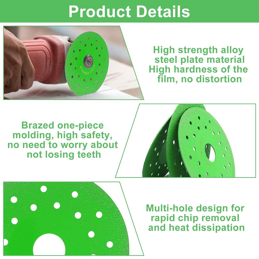 Quality Materials: The diamond blade for angle grinder is made of diamond particles, new brazing process, upgraded and improved blade. The porous design can effectively reduce material adhesion and overheating problems, dissipates heat and reduces losses