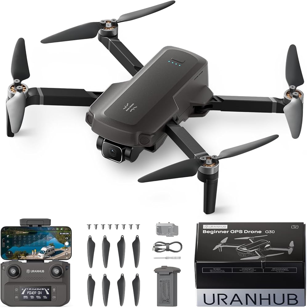 UranHub G30 Drone with 4K UHD Camera for Adults, GPS Drones for Kids/Beginner, Auto Return/Beginner Mode/Brushless Motor/Intelligent Flight, Cool Toys for Men Boys(Under 249 g)