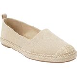 Slip-on faux suede flats have braided crochet detail at toe cap and midsole. Padded insole. Padded sock with canvas and twill lining. Braided rope-covered 1'' heel.