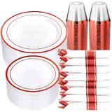 STURDY & DURABLE - These heavy-duty party plates and cups and napkins sets are made of hard plastic and are thick enough to avoid deformation or breaking from plates, knives, and forks. They can handle hot, cold, and wet food without leaks or spills.
