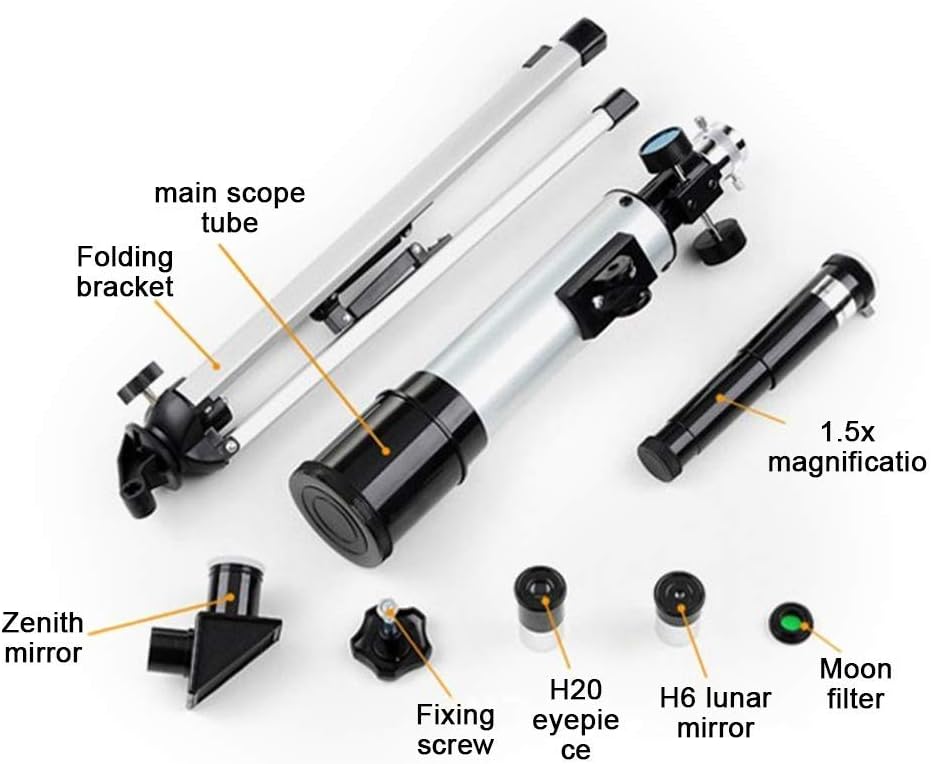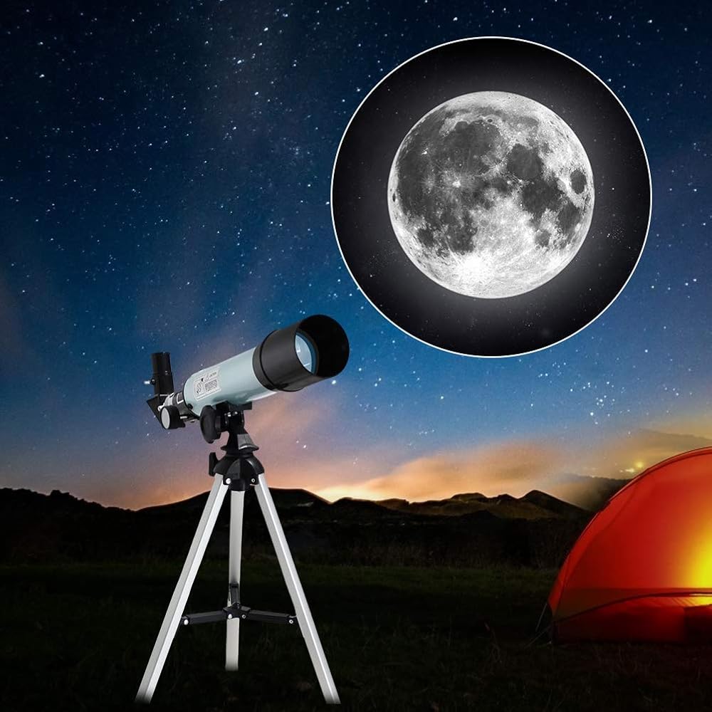 1. High magnification: 50mm aperture, fully coated optical glass and high transmittance coating, which can produce breathtaking images with higher brightness and clarity. Protect your eyes. The perfect refracting telescope, suitable for beginners or children to explore the sky.