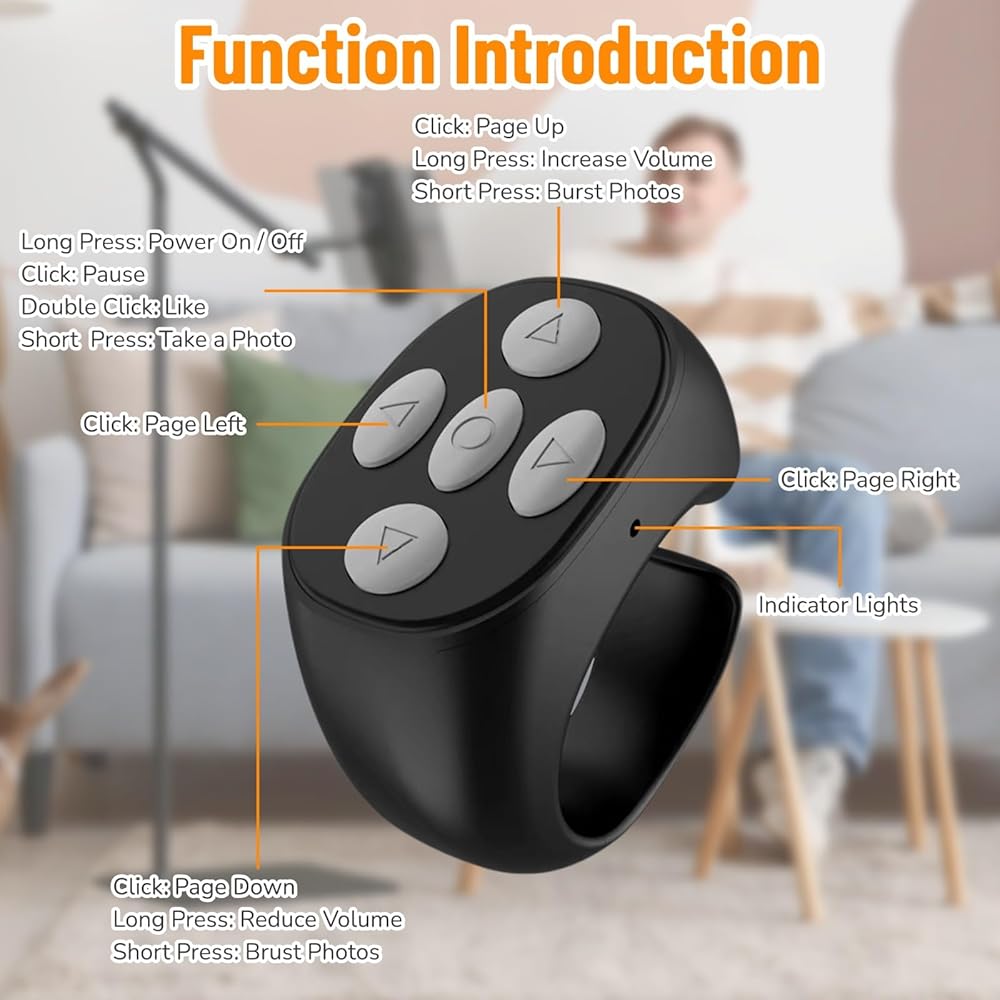 【Versatile Use】The remote scrolling ring is specially designed for users in various activities where carrying a phone is inconvenient, which is ideal for short videos, take pictures, read novels and more. Versatile in any setting, the bluetooth remote ensures a comfortable and user-friendly experience, particularly for those with limited hand mobility.