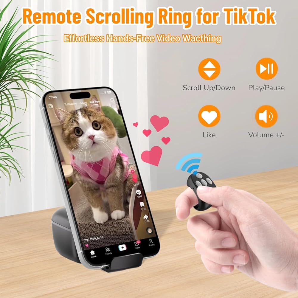 【Wireless Remote Control for Tik Tok】This remote page turner can help you realize all operations including scrolling up/down, swiping right/left, pause/start, volume + -, all free from touchscreen limitations, greatly improving tik tok viewing freedom and offering an intuitive experience. You can adjust your watching gesture easily withou worrying sore hands or neck pain.