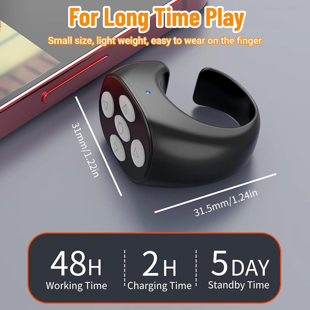 【Comfortable Ring Style Design】Phone scroller remote is ergonomically designed to fit securely on your finger, small size and light weight, minimizing fatigue during extended use. Its compact and portable design makes it easy to carry with you. Whether you are on the go or just out for a day trip, this device is your good companion.