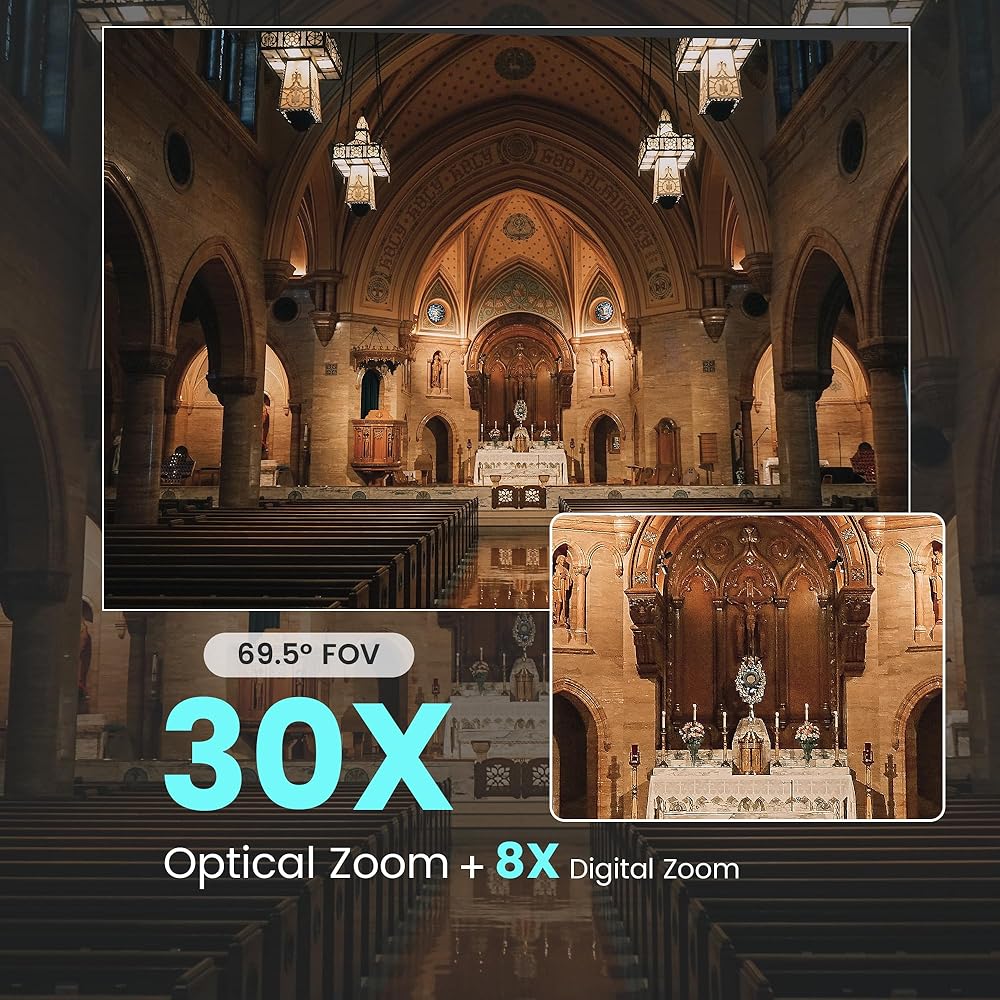 【𝐢𝐮𝐙𝐞𝐞 𝟑𝟎𝐗 𝐎𝐩𝐭𝐢𝐜𝐚𝐥 𝐙𝐨𝐨𝐦 & 𝟖𝐗 𝐃𝐢𝐠𝐢𝐭𝐚𝐥 𝐙𝐨𝐨𝐦 𝐏𝐓𝐙 𝐂𝐚𝐦𝐞𝐫𝐚】Using 1/2.8-inch image sensor and 2D 3D noise reduction technology; equipped with a 69.5 degree horizontal ultra-wide angle lens, the live streaming camera can easily and accurately capture a wide picture, arching a clear image picture. Also, this streaming camera can be smoothly and silently rotated 350°(±175°) horizontally and 180°vertically by remote control. Up to 255 camera presets can be set.