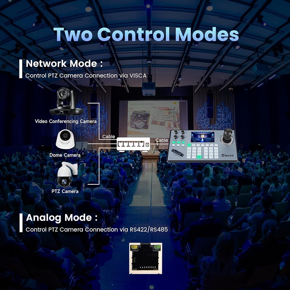 【𝐢𝐮𝐙𝐞𝐞 𝐍𝐞𝐰 𝐔𝐩𝐠𝐫𝐚𝐝𝐞𝐝 𝐏𝐓𝐙 𝐂𝐚𝐦𝐞𝐫𝐚 𝐂𝐨𝐧𝐭𝐫𝐨𝐥𝐥𝐞𝐫】This PTZ controller is equipped with a variable-speed 4D joystick and a 5-inch LCD screen with real-time preview, allowing you to easily control the camera's all-round rotation, zoom in and out of the lens, thereby bringing a more professional video production experience. Meanwhile, the PTZ controller also supports independent IP addresses and IE browsers to add configurations of front-end device parameters.