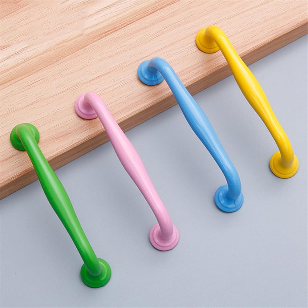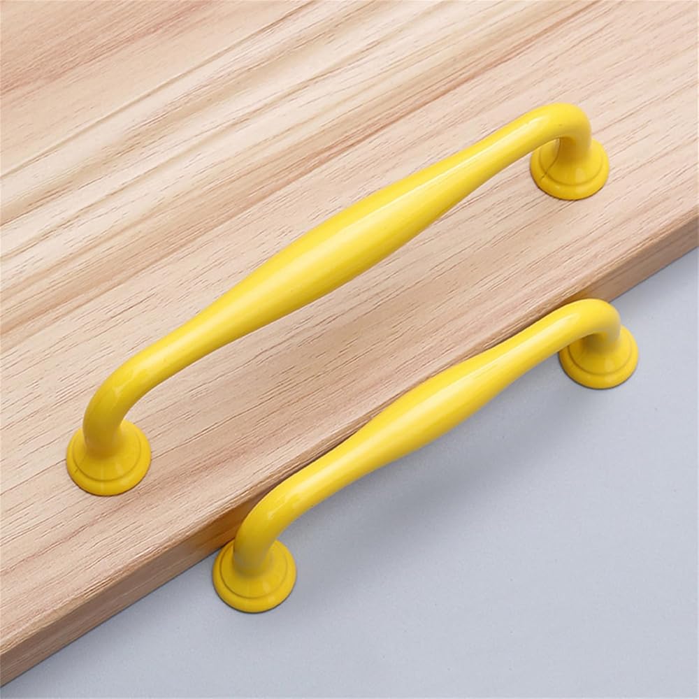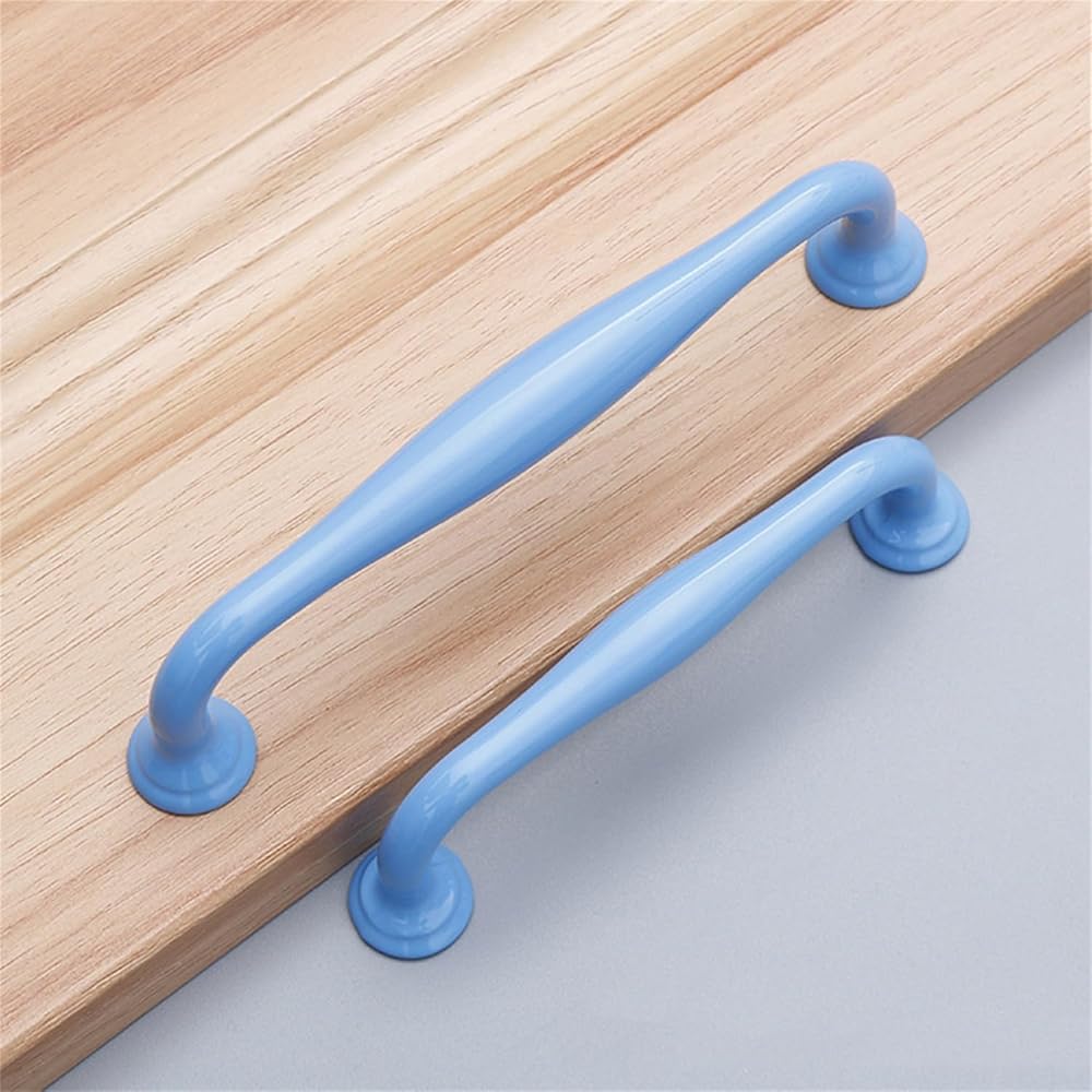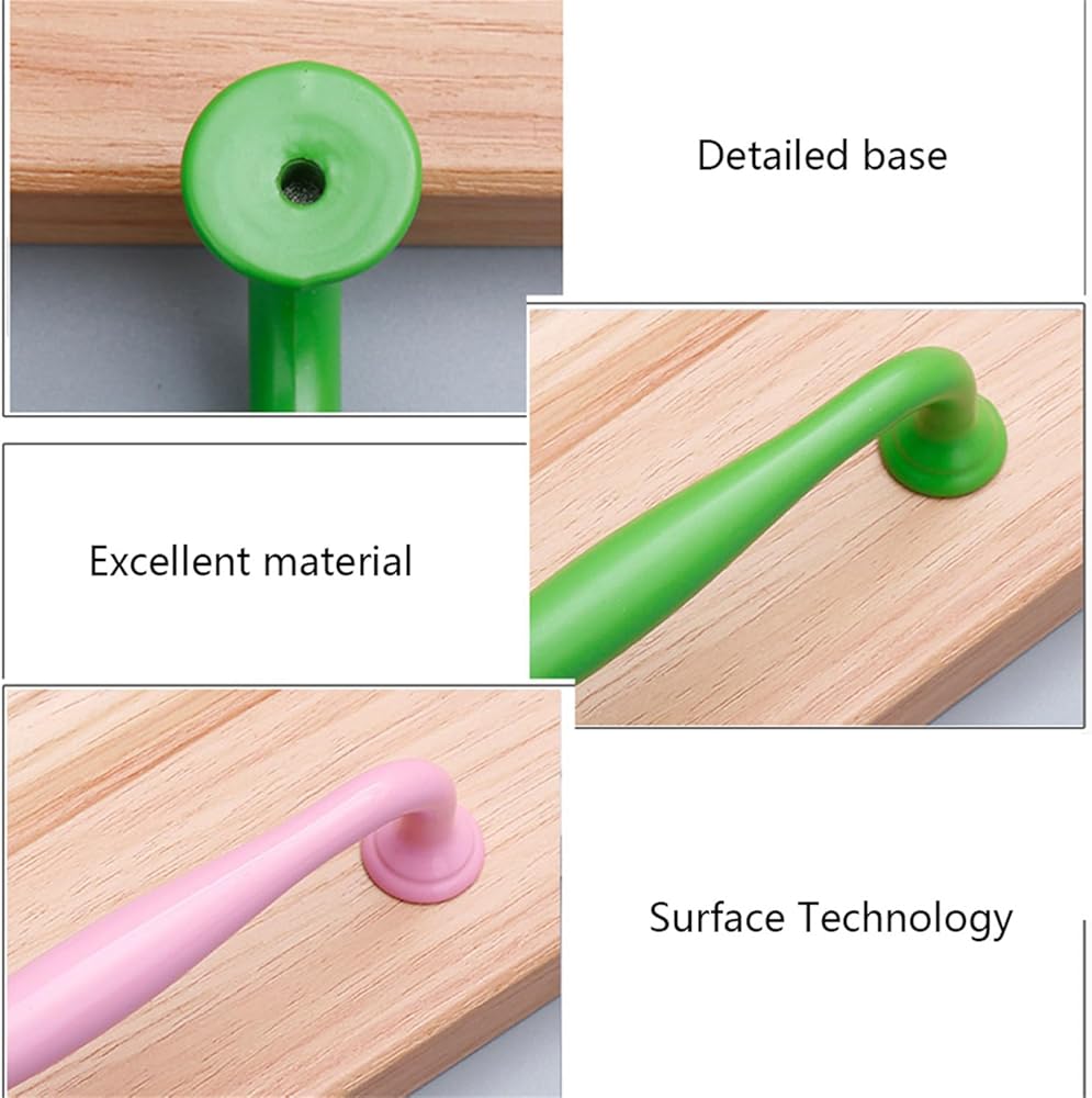 If you like DIY, this is a perfect shopping experience, our handles look great on any DIY project and you don't have to spend too much money. Product details: *Name: Nursery multi-coloured handle *Material: Aluminium alloy *Colour: blue/pink/yellow/green *Specifications: Hole spacing 96mm: length 113mm, width 18mm, height 32mm Hole spacing 128mm: length 147mm, width 18mm, height 35mm 1.ergonomic design:The appearance of the cabinet handles has been polished and bent several times to avoid scratches. Handle is ergonomic and extremely comfortable. We have made sufficient preparations for your experience.With this modern handle, you can easily transform cabinets, doors, drawers, bathrooms, etc. to make them more fashionable and beautiful. 2.Design with Rounded Corners:Furniture handles carried out the multi-layer electroplating and multi-layer baking and colouring process. The surface finishing of cabinet handles is so effective against scratches and corrosion 3.they are not only handles, but also part of the interior design, ideal for replacing old handles quickly and inexpensively. Enhance/decorate your furniture and improve its flavour. *Package includes: * Package contents: 2 x handle + screw