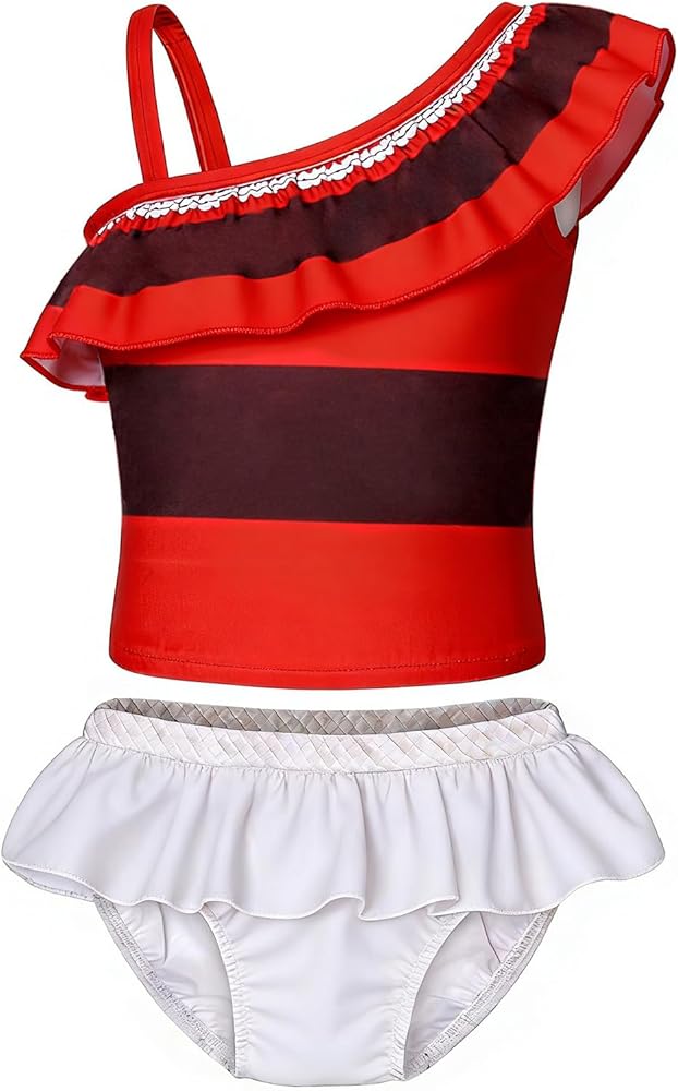 AmzBarley Girls Swimwear 2 Pieces Bathing Suit Ruffle One Shoulder Swimsuits Bikini Set Swimming Skirts