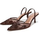 FEATURES: Exquisitely crafted with delicate intricate embroidery, and bead accents, these slingback heels blend sophistication with modern. The backless silhouette and pointed toe elevate their bridal-ready appeal for weddings or formal events.