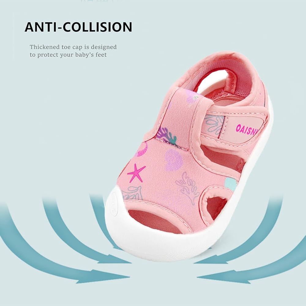 ANTI-COLLISION TOE: Unique and lovely half closed toe design, which provides more protection for kids'little feet, and offer more breathable and comfortable for baby at the same time