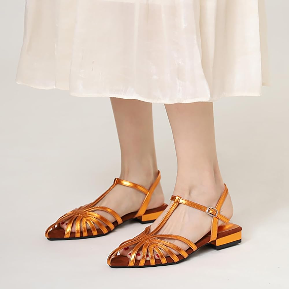 【Adjustable Buckle Ankle Strap】Retro T-Strap Women'S Sandals, With Convenient And Adjustable Buckle Ankle Straps, Easy To Put On And Take Off. Adopt Cross Straps And T-Straps, Perfect For Shoes.
