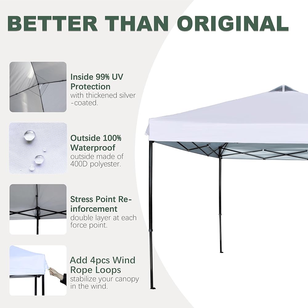 ✅【Better Than Your Original】Fits most 10x10 without peak pole canopy frames (its really important top check : Not fits have central pole frame). The cover is made of 400 Denier fabric with silver coated provides UPF 50+ UV protection.CPAI-84 rated flame resistant. Latest technology in the industry: Heat sealed seam,prevents water penetrate from seams, 100% waterproof.