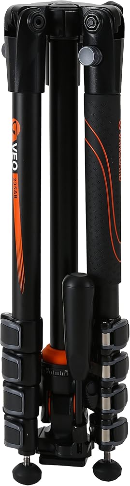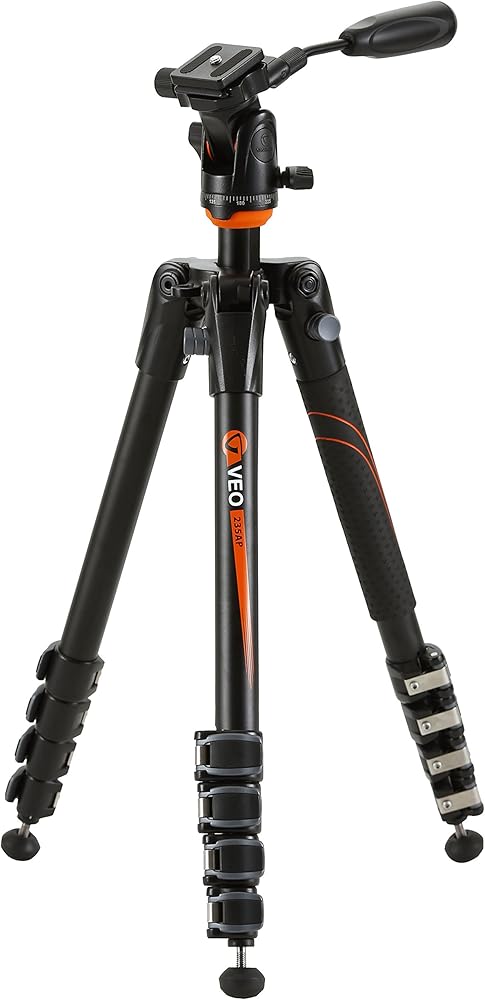 The VEO 235AB offers photographers the ultimate balance between low weight and stability in a full-featured ball head aluminum tripod kit. Quickly swing the VEO column into place, connect your camera and you're ready to shoot in a moment's notice. Stable 23mm legs combined with a new leg lock design, which allows you to adjust the tightness, ensures sturdiness to support cameras up to a Pro DSLR with grip and long lens. The VEO 235AB also works well for owners of standard DSLR cameras or Mirrorless 4/3 camera kits. The strong ball head includes an Arca Swiss compatible plate for quick camera attachment and release. With feet that can be converted from rubber to spikes, you'll be ready to shoot in urban or outdoor environments. Easily position legs to three angles with the simple push of a button. With the included adapter, adventurous photographers can capture low angle shots. A stylish design with soft rubber handle provides an unbeatable grip. Use the included carrying case when you are ready to take the VEO on your next photo adventure.