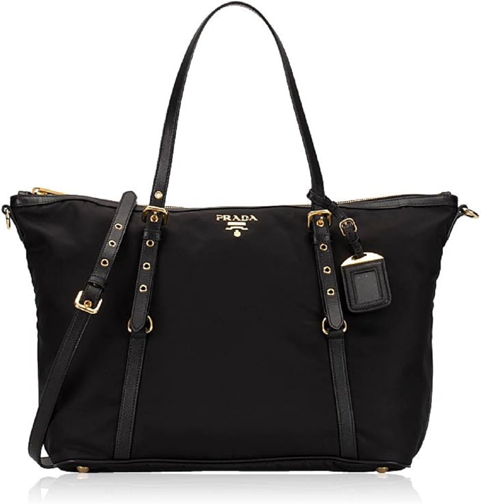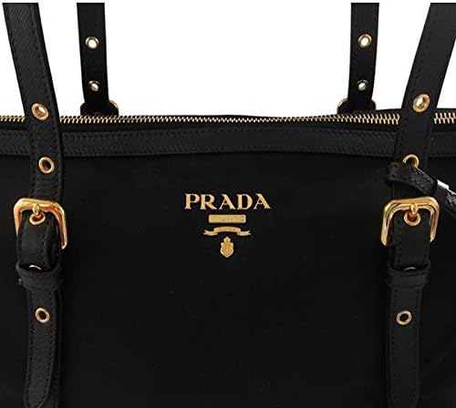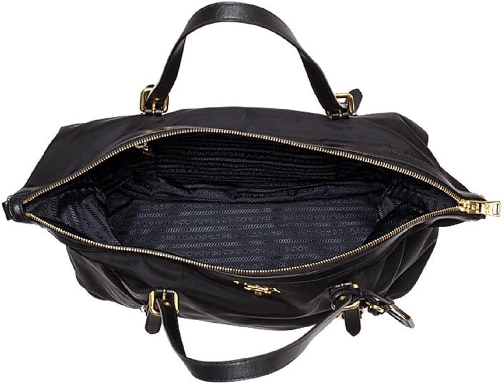 This Prada Tessuto Saffiano Nylon and Leather Shopping Tote Bag Ultra-luxe & spacious, pack up and go almost anywhere with this classic carryall from Prada. Signature gold-tone hardware dress up the durable & light-weight nylon trimmed in luxurious calf leather. Ideal for the sophisticated lady who prefers an understated bag with effortless practicality. Fits A4-sized document folders.