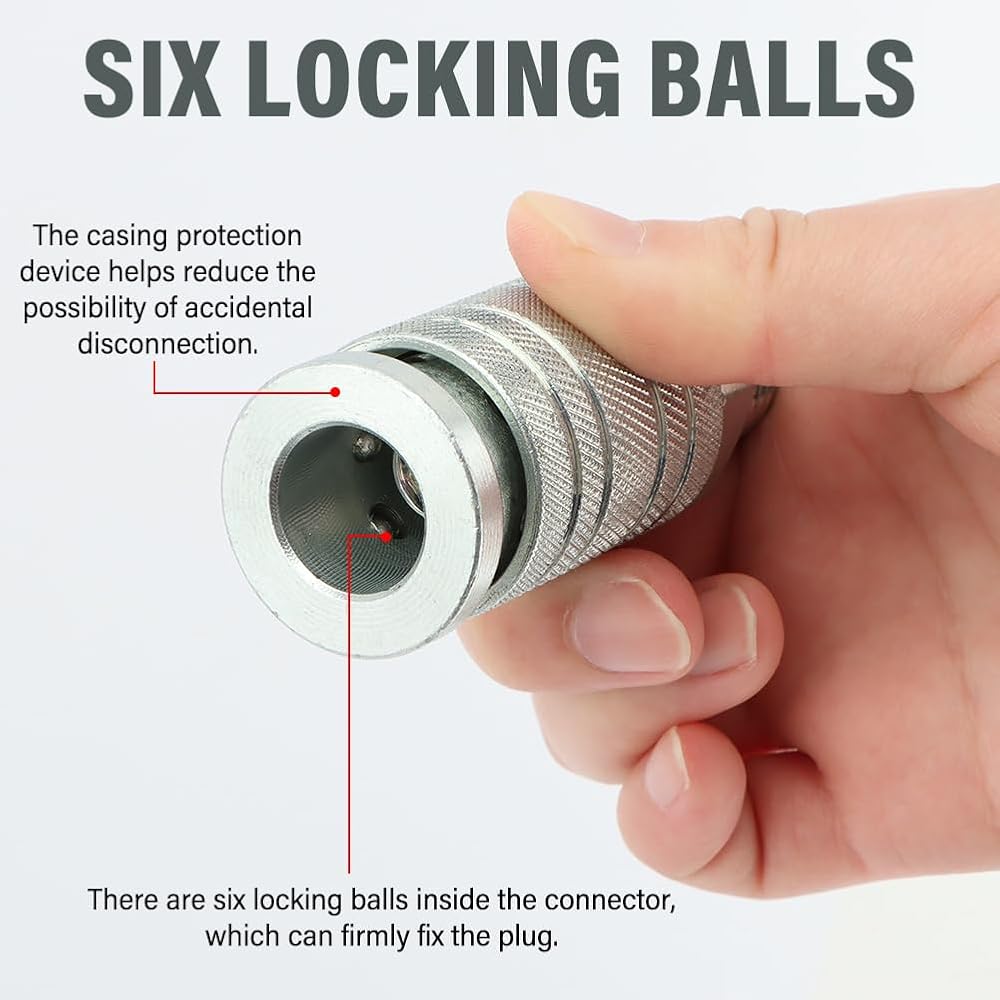 4. Six Locking Balls: The connector has six internal locking balls that securely hold the plug in place. A sleeve protector helps reduce the likelihood of accidental disconnection.