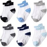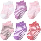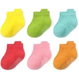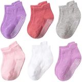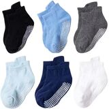 SUITABLE AGE: Our kids non-slip socks are suitable for baby toddler kids aged 0-12 months 1-3T 3-5T There are 6 pairs of baby non slip crew socks in a pack, which can meet the daily change and wash, so that the baby always has clean socks to replace
