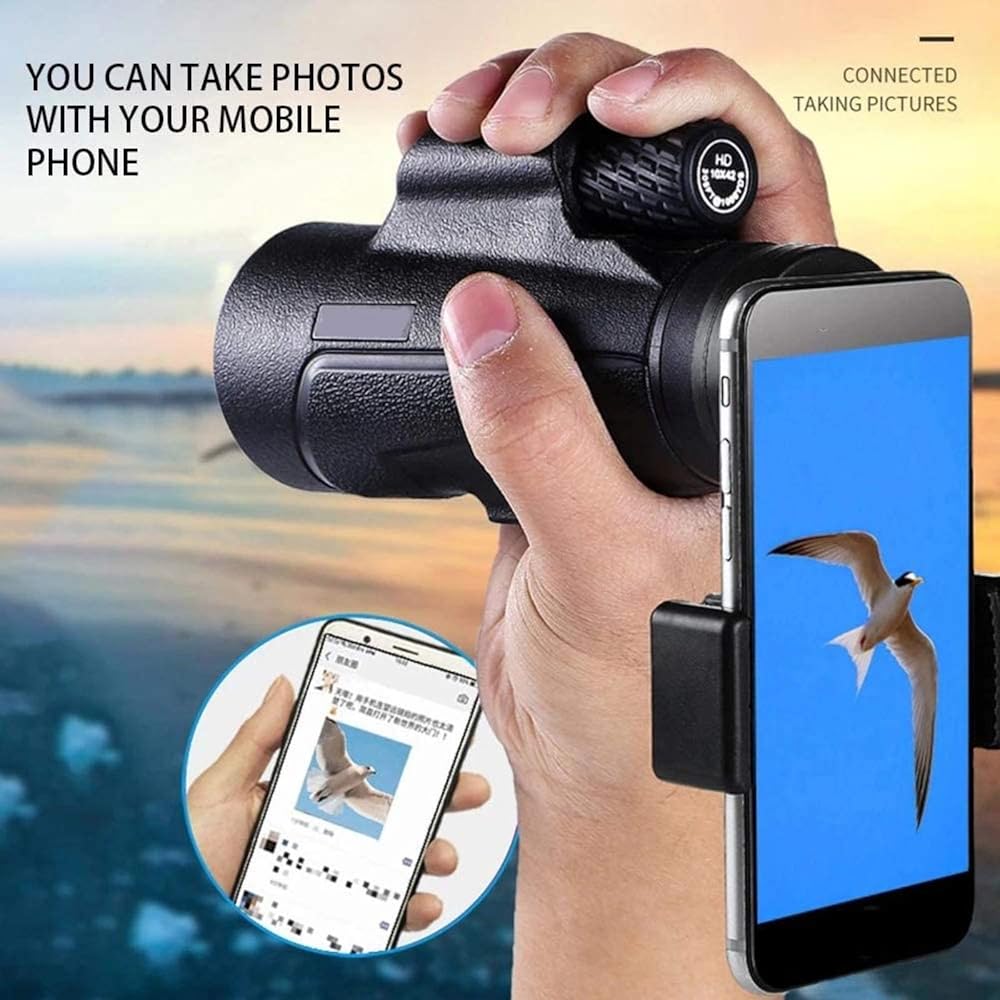 Easy to Use: You can see scenery Easily and Rapidly by using our monocular telescope for Single Hand-Adjust the eye cup and Focus Wheel until see clear and bright image, the Smartphone Holder and extendable stable tripod would help you to get a HD IMAGE or VIDEO easily