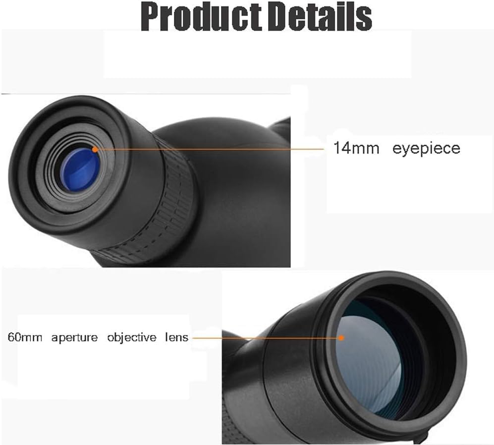 ★ 14mm eyepieces, large eyepieces of monoculars are comfortable and stable to watch, long-term viewing can help relieve eye fatigue, 60mm-diameter objective lens, large-diameter objective lens, sufficient light input, clear and bright viewing picture.