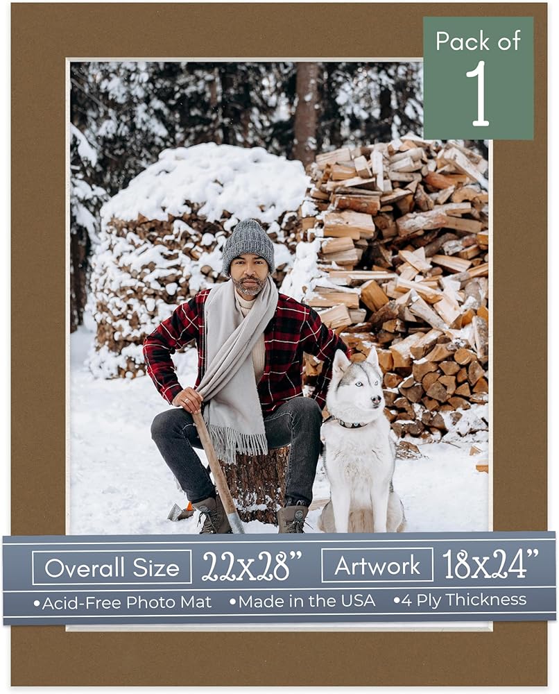 CountryArtHouse Aged Oak Acid Free 22x28 Picture Frame Mats with White Core Bevel Cut for 18x24 Pictures - Fits 22x28 Frame - One Mat - With Bag & Backing