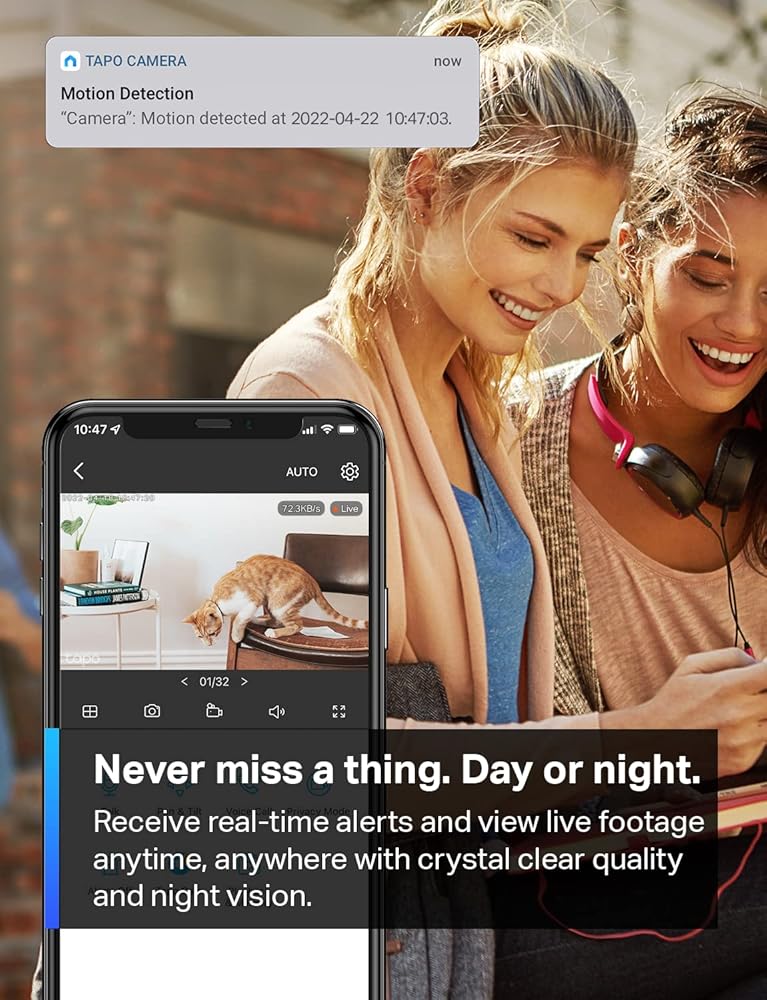 If you are looking for a compact, feature packed, versatile camera solution, the Tapo C103 is the ideal camera for you. The camera includes premium features at no additional cost, such as its free person/pet/vehicle detection, powered by AI processing as well as a suite of other features including full duplex two-way audio, Alexa and Google compatibility and light and sound alarms. Monitor where you want with custom monitoring zones and add additional privacy with privacy zones. The camera image sensor is 1/29.'' progressive scan CMOS starlight sensor. The camera lens focal length is 3.17 mm and has a 1.65 aperture. The camera field of view is 120° diagonal, 103° horizontal, and 55° vertical. The night vision is 850 nm IR LED (30 ft / 9 m), 940 nm IR LED (30 ft / 9 m). The camera has full color night vision. The camera frame rate is 20 fps (self-adaptive according to brightness). The camera's digital zoom is 12x. The camera's video compression is H.264. The camera has a live view. The image enhancement features 3K DNR and WDR. This camera has two-way audio with noise cancellation. The siren level is 96dB (level measured at 4-inch/10-cm distance). This camera's AI detections include motion detection, person detection, line-crossing detection, baby cry detection, vehicle detection, pet detection, meow detection, bark detection, and glass-breaking detection. This camera supports the 802.11b/g/n protocol. The wireless rates are as follows: 11 Mbps (802.11 b), 54 Mbps (802.11 g), 72.2 Mbps (802.11n). Wireless security includes WPA, WPA2-PSK. The security features include 128-bit AES encryption with SSL/TLS and on-device machine learning. The packaging contents include 1 Tapo C103 Camera, 1 5.0 V, 1.0 A power adapter, 3m (9.84ft) Type-C wire, 4 mounting anchors, 4 mounting screws, 2 cable organizers, 1 mounting template, 1 iron camera base, 3M adhesive, detaching pin, 1 quick start guide.