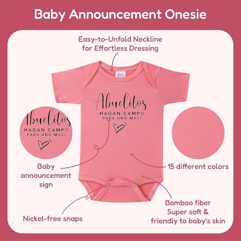 Pregnancy Announcement for Grandparents: This soft baby onesie is designed for the perfect pregnancy revelation.Whether you want to announce your pregnancy to grandparents,husband or friends,this"Abuelitos Hagan Campo Para Uno Mas"funny Spanish pregnancy announcement onesie celebrates the arrival of your little one in a creative way that makes baby announcement ideas stand out!